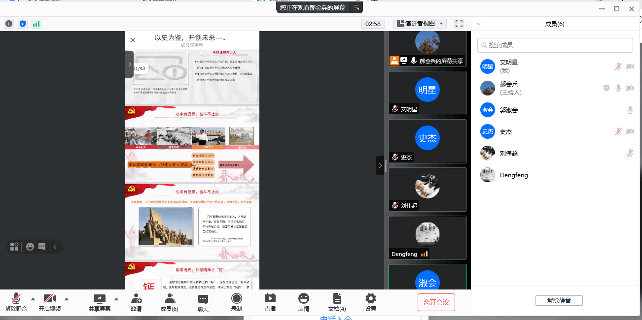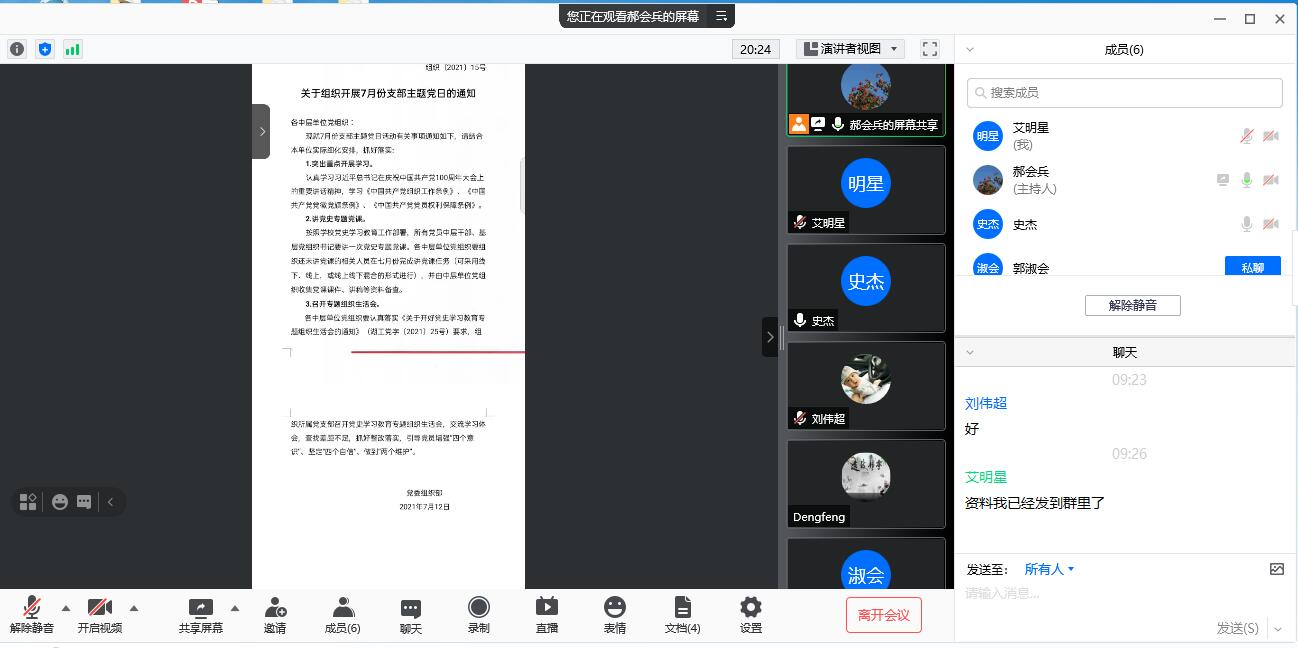会上,潘保国、郝会兵分别带领支部全体党员学习了习近平总书记在庆祝中国共产党成立100周年大会上的重要讲话精神、《中国共产党组织工作条例》《中国共产党党徽党旗条例》《中国共产党党员权利保障条例》等文件精神。