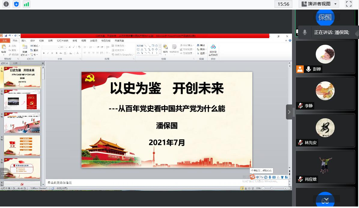 7月15日、16日,WilliamHill威廉希尔教工一支部、教工二支部分别以腾讯会议的形式开展“支部书记讲党史专题党课”暨7月份支部主题党日活动,教工一支部书记潘保国、教工二支部书记郝会兵分别为支部党员讲党史学习教育专题党课。