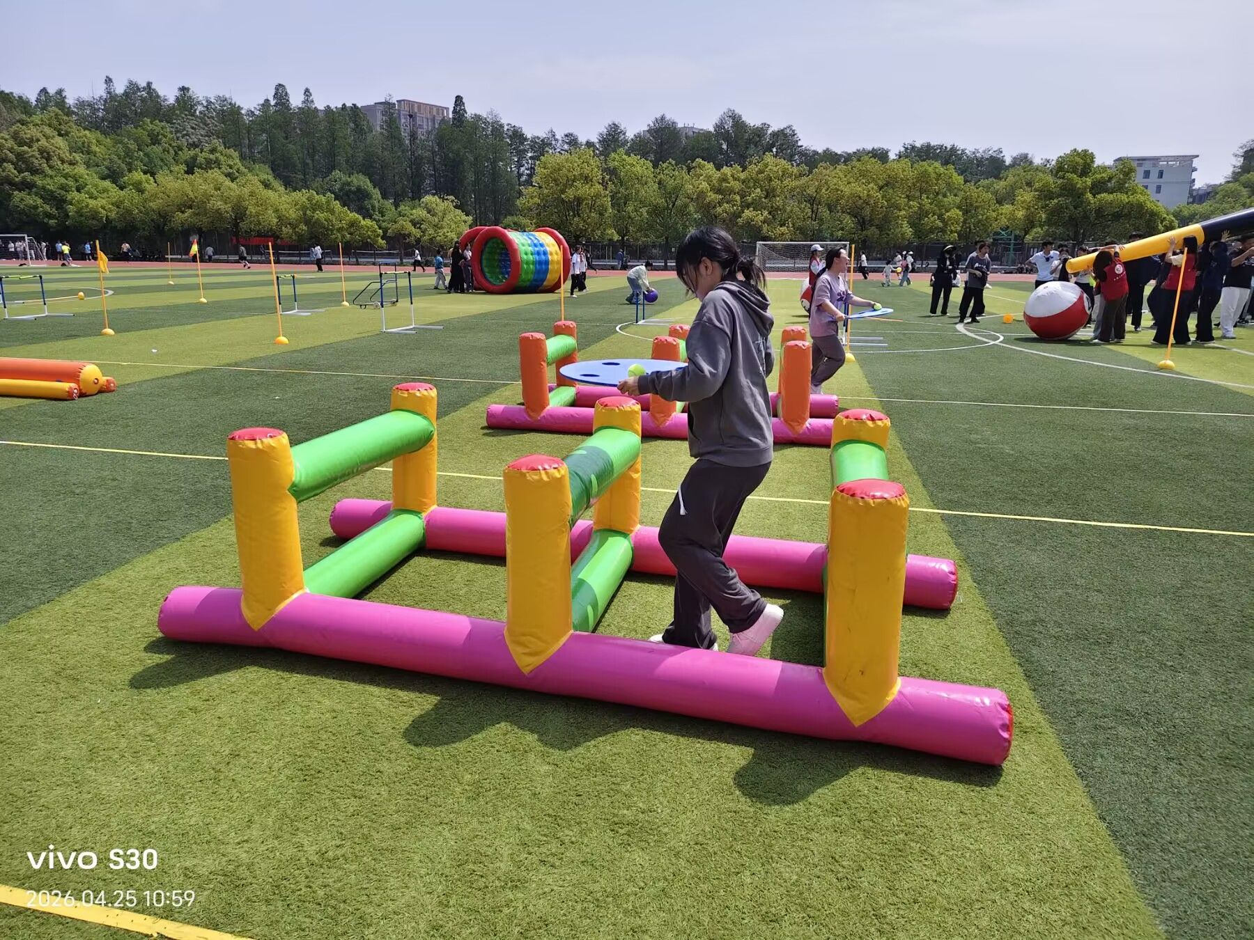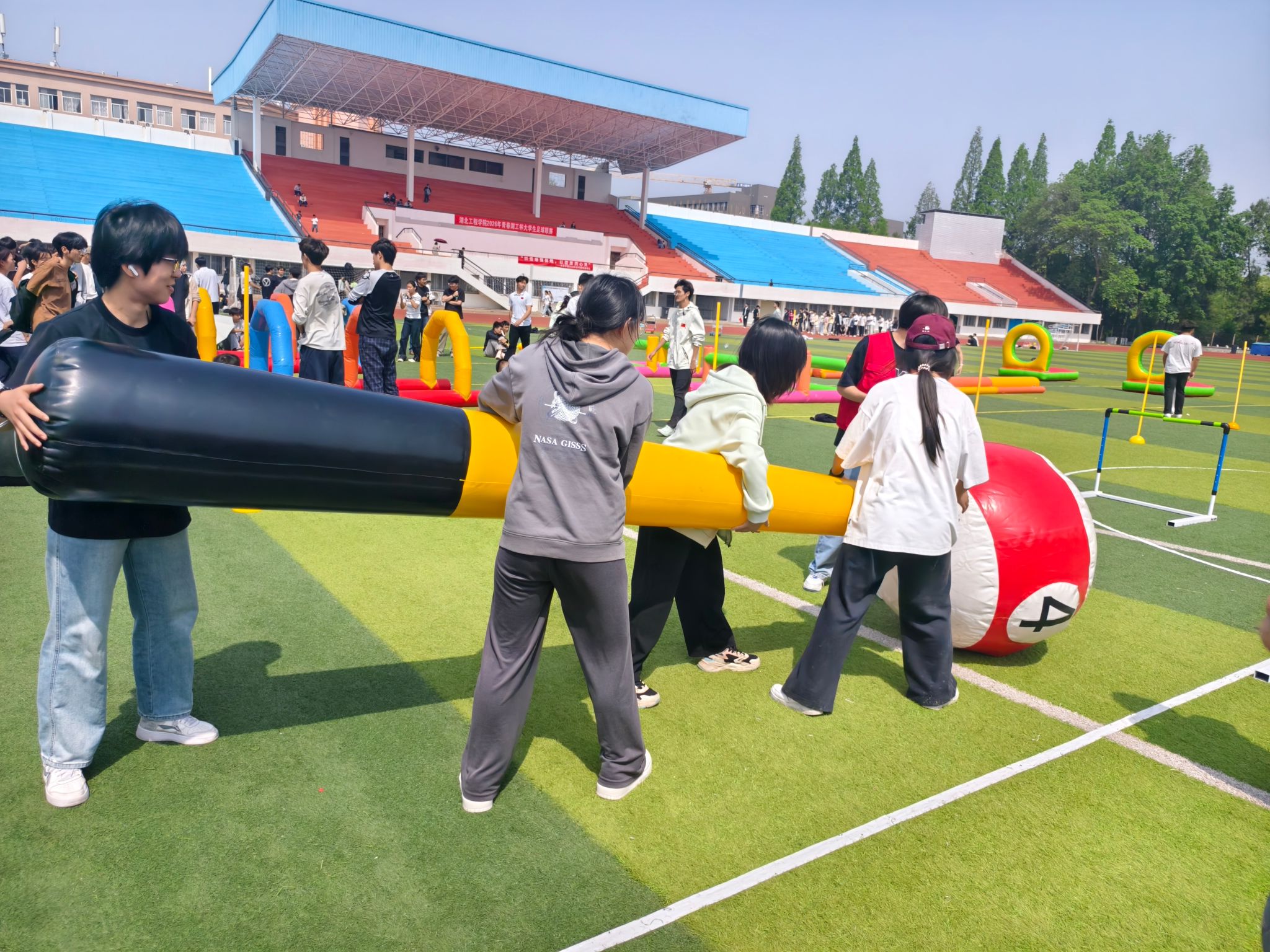 本次运动会以“以动润心,以聚暖情”为理念,紧扣大学生学业压力疏导、情绪调节、团队沟通等核心需求,精心设置滚滚向前、一锤定音、四平八稳、齐心合力、极限闯关 等五大团体项目。所有项目均以4人团队形式开展,要求每队至少1名女生参与,兼具趣味性、协作性与挑战性。