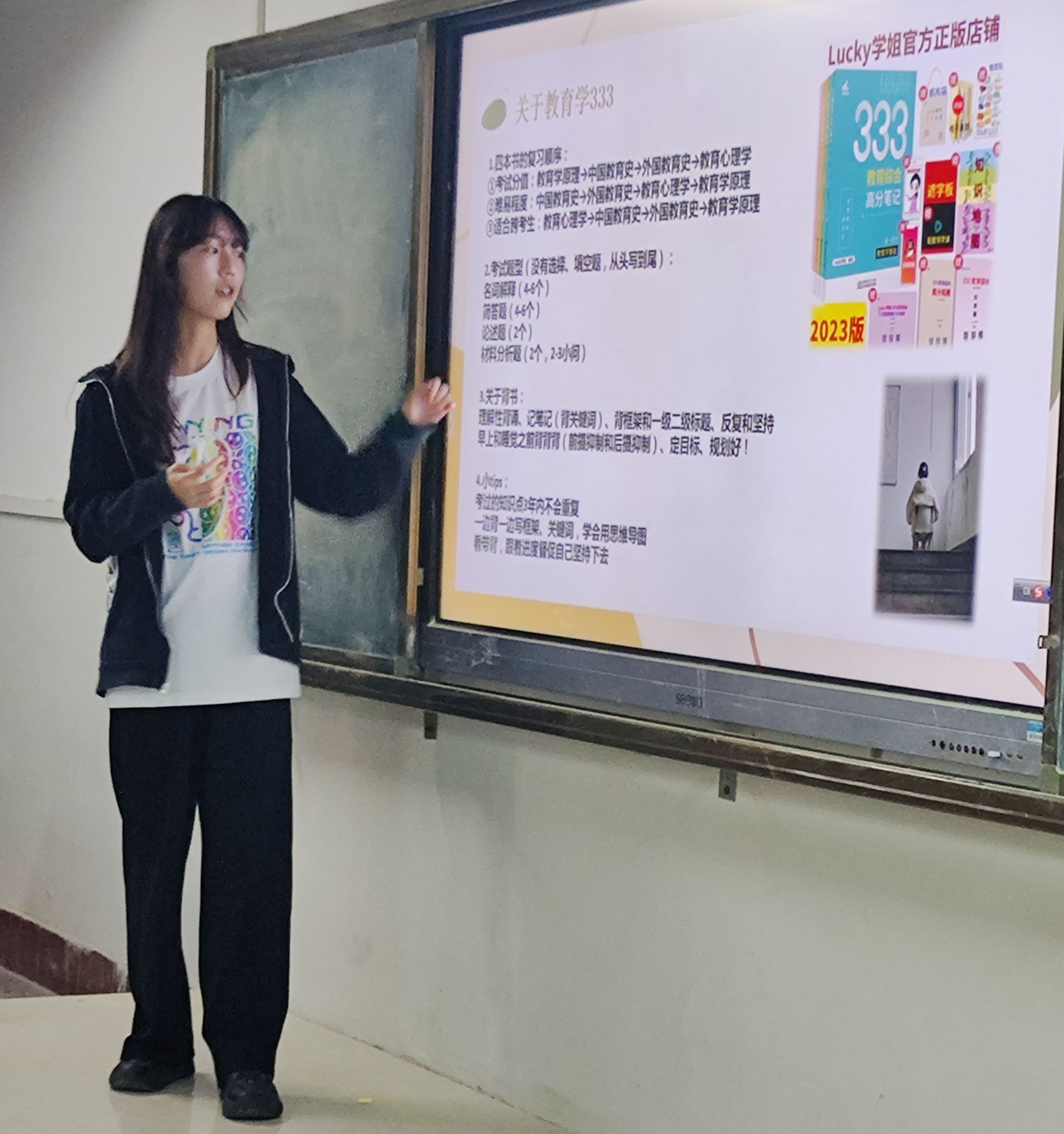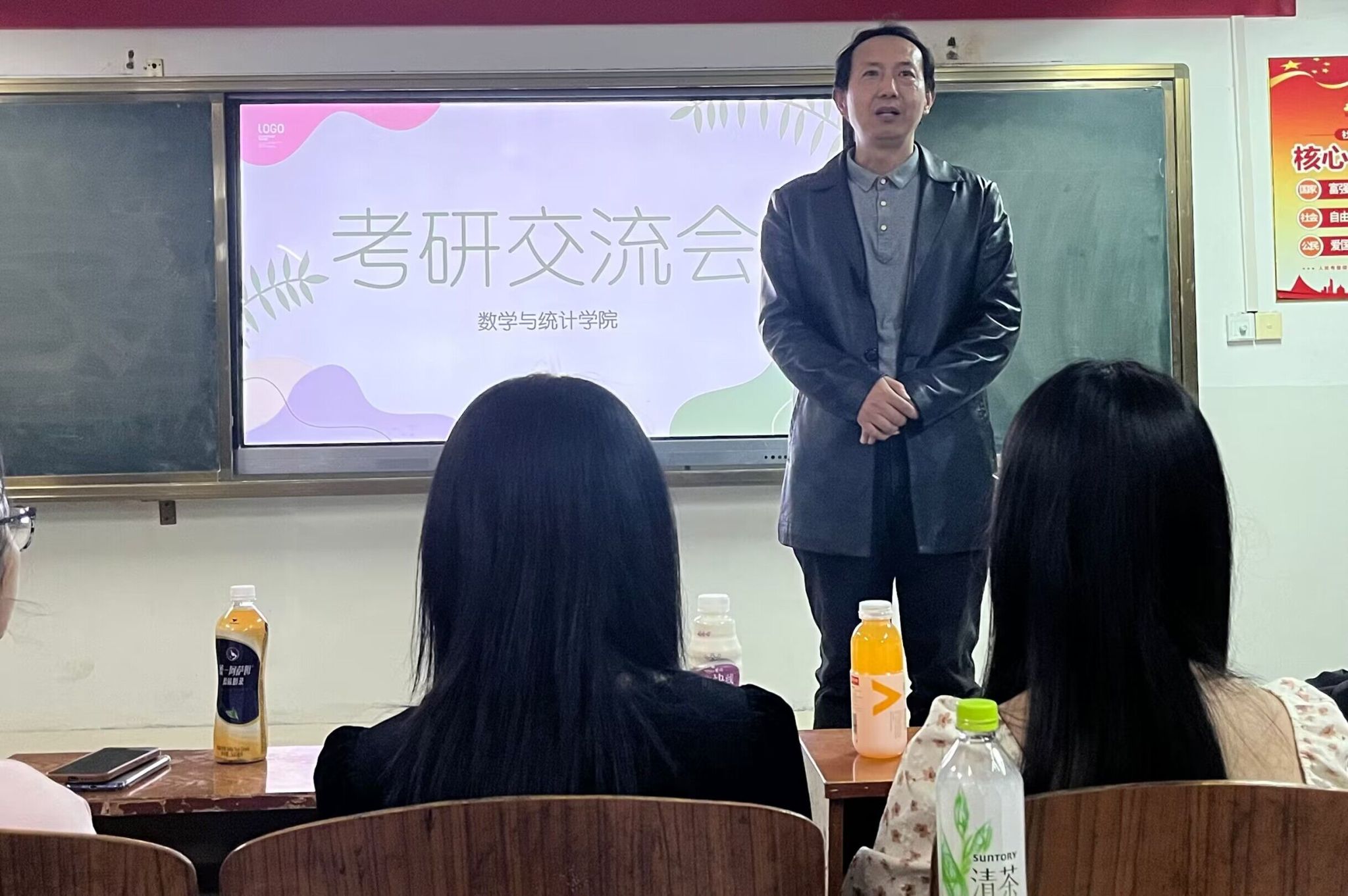 为帮助同学们在考研期间能够合理安排学习计划、找到更适合自己的学习方法、明确考研目标,5月7日晚上7点我院在教六202开展了考研经验分享交流会。本次会议由数统学院党委副书记尹洁主持,邀请了我院成功上岸的优秀大四学生来分享他们考研经验,并为即将考研的同学们提供一些建议。