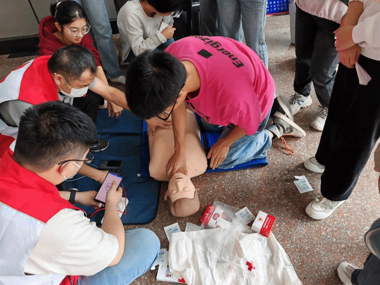 此次培训采用实践和理论相结合的模式,培训的老师分别对红十字运动基本知识、应急救护新概念、气道梗阻急救、心肺复苏、创伤救护等理论和实际操作进行了系统讲解,重点对AED(自动体外除颤仪)使用、心肺复苏、外伤止血包扎等常用急救技能进行了演练。参训的学生认真听讲、积极与讲师互动,现场气氛十分热烈。每一个重点知识讲解演练完毕便分组让学生自由练习,同学们认真地学、反复地做,力争使每一个动作标准、到位,培训老师也会对实操中同学们出现的错误动作进行细心指正与讲解,加深印象。培训结束后,现场分别进行了理论和实操考核,学员通过系列考核后,将取得红十字救护员(初级)证。
