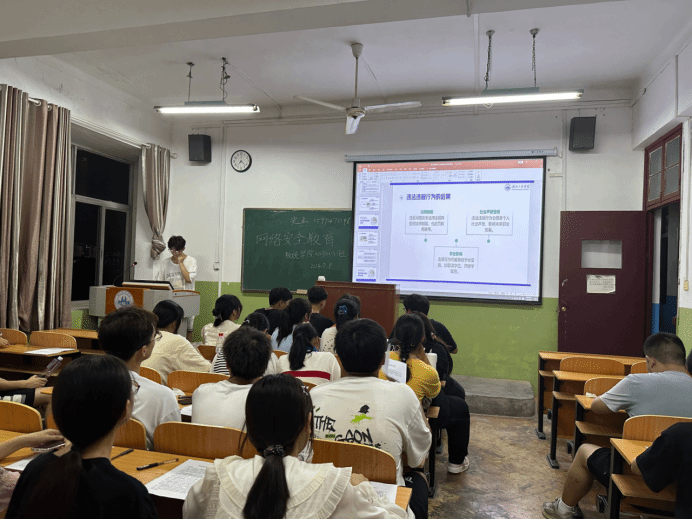 2024年是习近平总书记提出网络强国战略目标10周年,是习近平总书记提出总体国家安全观10周年,也是习近平总书记作出网络安全工作“四个坚持”重要指示5周年。为了深入开展网络安全宣传教育,增强大学生的网络安全意识和文明规范,9月8日,数统学院利用各班晚点评时间开展网络安全宣传教育主题班会。