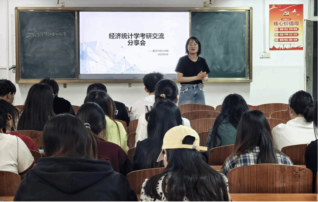 4月25日晚,WilliamHill威廉希尔于教6-211举办“经统研途,数说未来”考研经验交流会,特邀四位考研上岸学子返校分享备考经验。此次交流会由辅导员吴亚美主持,吸引百余名学生参与,聚焦跨考策略、学科方法论与心态管理等核心议题,搭建朋辈互助交流平台。