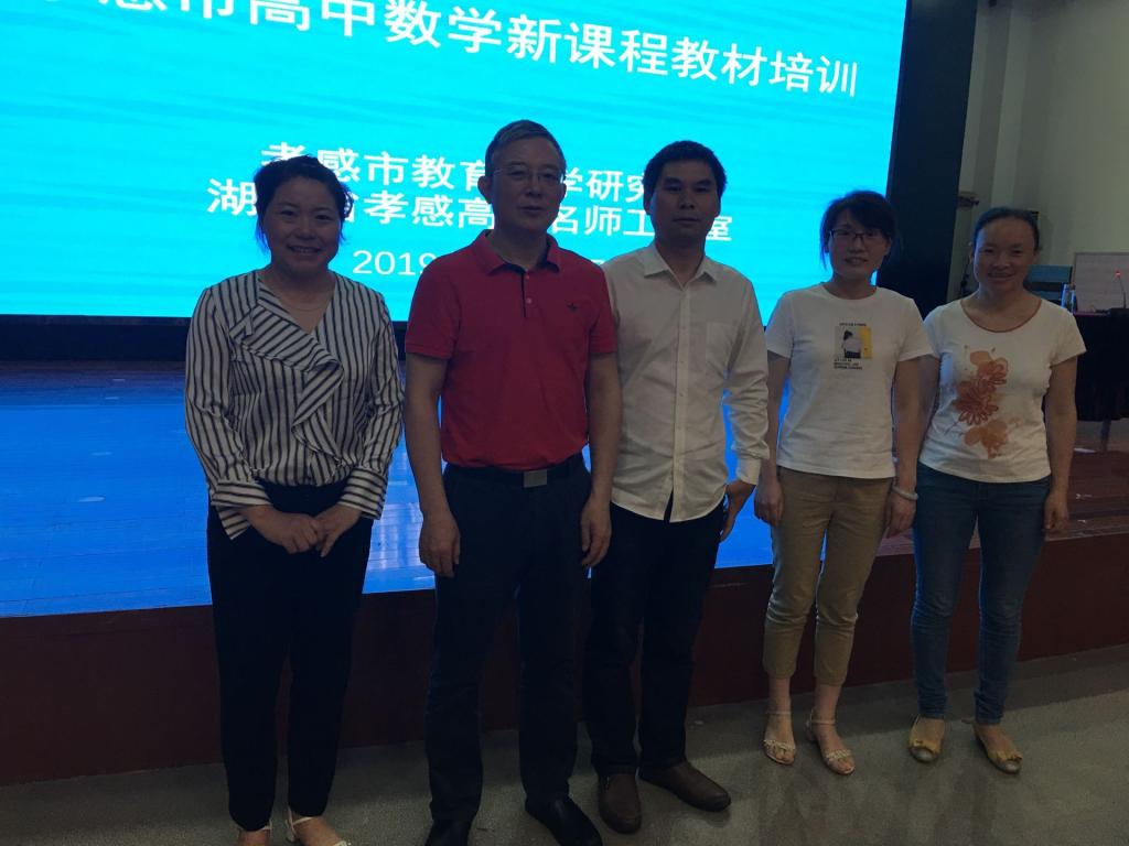 应孝感市教育科学院、湖北省孝感高级中学名师工作室邀请,今天上午9点在孝感市教育局二楼会议室,我院张学新副院长及曾梅兰系主任等10名“荆楚卓越人才”协同育人计划项目师生参加了“基于核心素养的课标、教材设计与教学实施”报告会,报告由人民教育出版社中数室副编审、人教版《普通高中教科书数学A版》副主编李龙才博士主讲。据悉,全孝感市高中学校2019级高一年级全体数学教师,各县市区教研室高中数学教研员都参加了此次报告会的学习,学习期间张院长及师生与李龙才博士及中学老师们进行了友好交流。