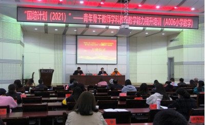 2021年10月18日上午,“国培计划(2021)”——青年骨干教师学科教育教学能力提升培训班(小学数学)开班典礼在我校文学与新闻传播学院报告厅举行,一百名来自襄阳、宜昌、恩施等地的青年教师莅临我校参加为期12天的教育培训。