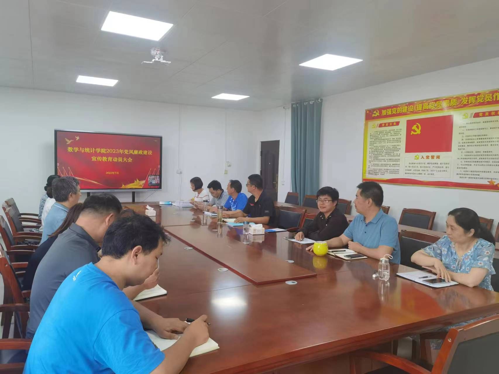7月14日,我院开展2023年党风廉政建设宣传教育月活动暨党委书记讲廉政党课,班子成员及党员教师参加,会议由党委书记王晶主持。