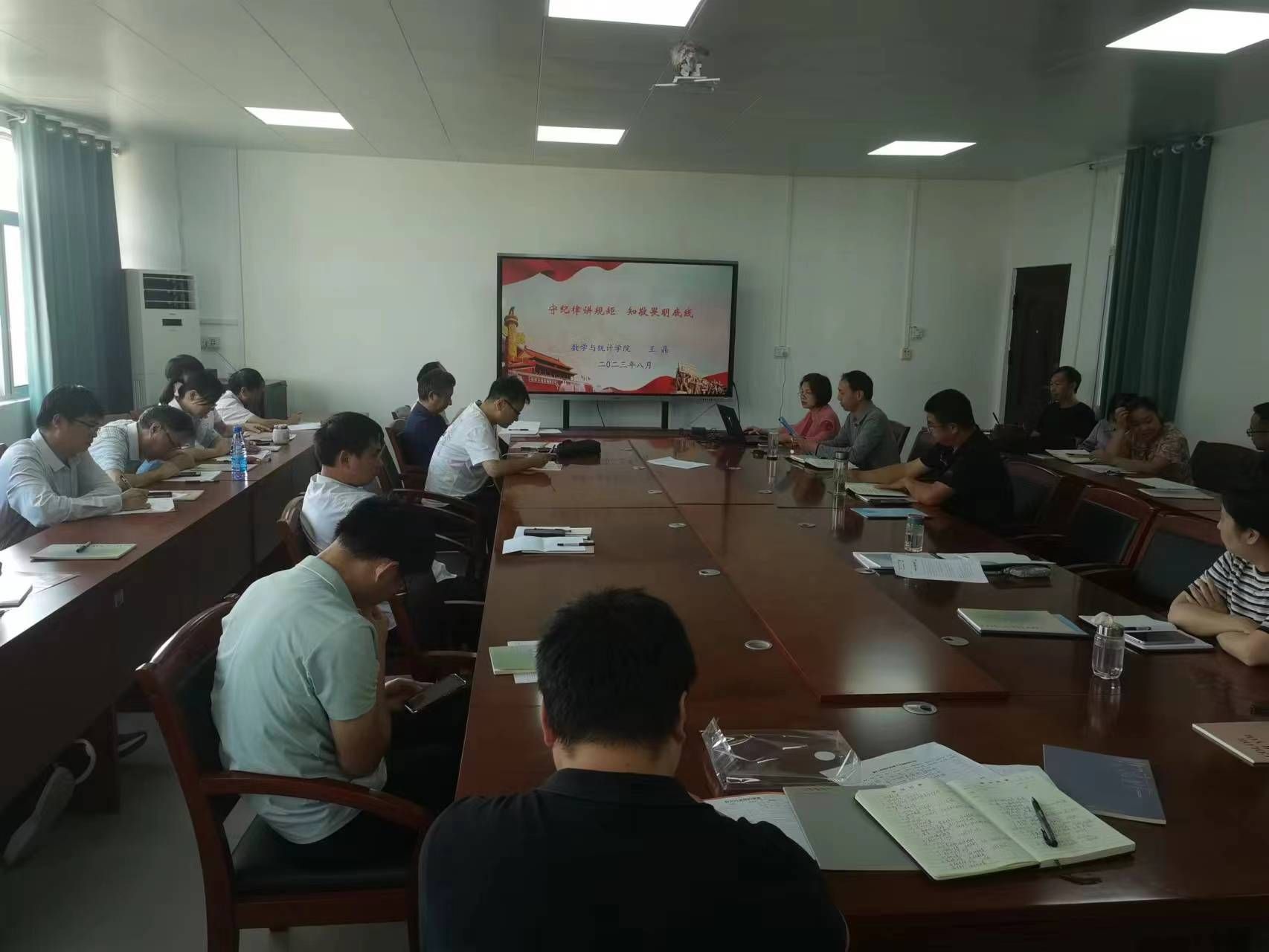 为切实加强师德师风及纪律教育,推进学校党风廉政建设工作,营造风清气正的教育发展环境。8月29日下午,数统学院开展新学期“师德师风 警示教育”专题教育学习活动,引导广大教职员工严明政治纪律、坚守教育初心、践行育人使命、铸就高尚师魂,全面提升政治素养和师德涵养。学习活动由党委书记王晶主持。