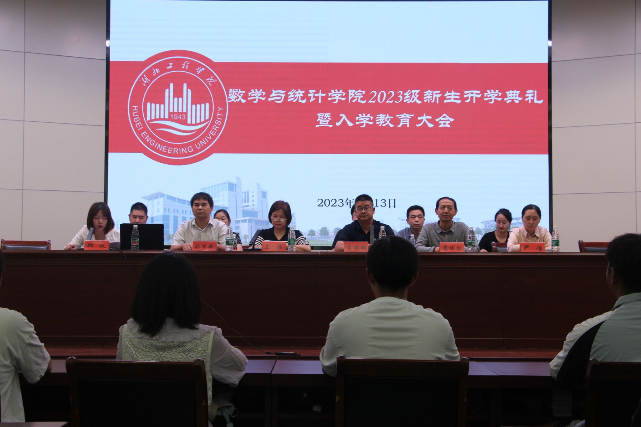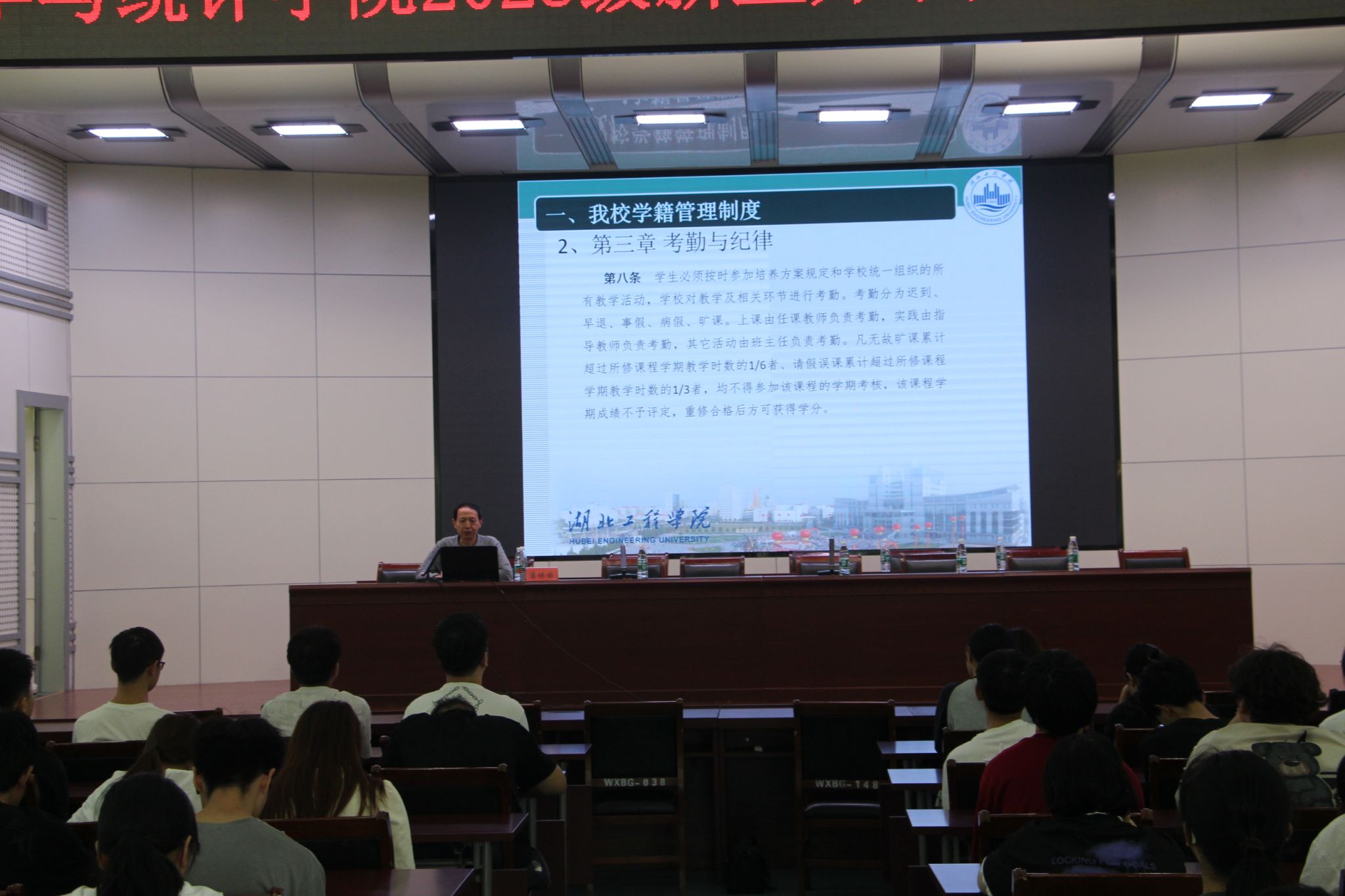 院长肖应雄代表数统学院向来自全国各地的2023级新同学们表示热烈的欢迎,他介绍了学院的办学情况和取得的成绩与荣誉,向全体新生提出了殷切期望:一是要明确目标;二是要持之以恒;三是要独立自主;四是要全面发展。