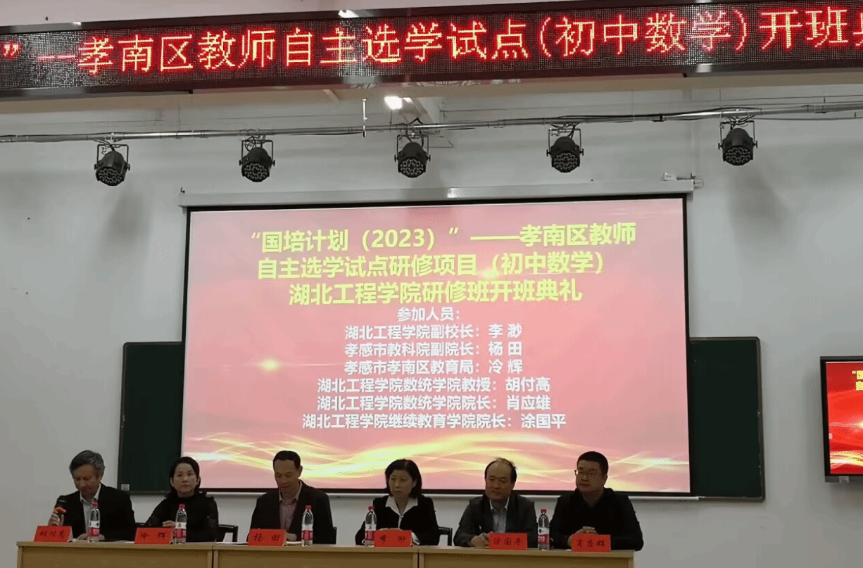 2023年11月1日上午,国培计划(2023)”——孝南区教师自主选学试点研修项目(初中数学)在威廉williamhill隆重开班。威廉williamhill副校长李渺、孝感市教科院副院长杨田、孝南区教育局冷辉、继续教育学院院长涂国平、WilliamHill威廉希尔院长肖应雄出席典礼。项目负责人胡付高教授主持典礼。来自孝感市孝南区各中学的100名数学骨干教师参加了开班典礼。