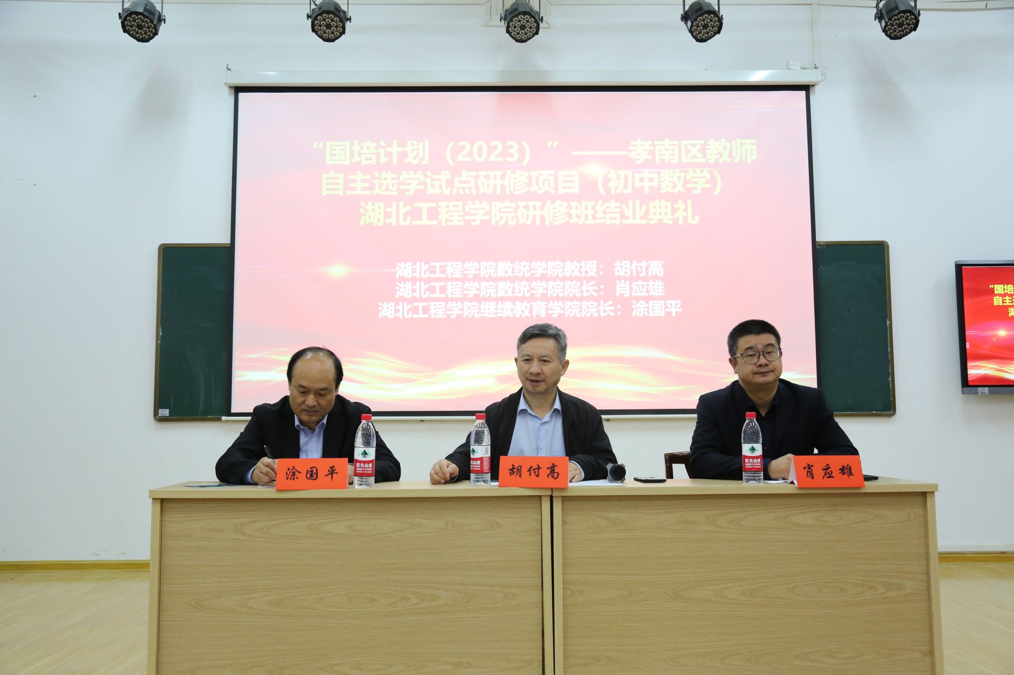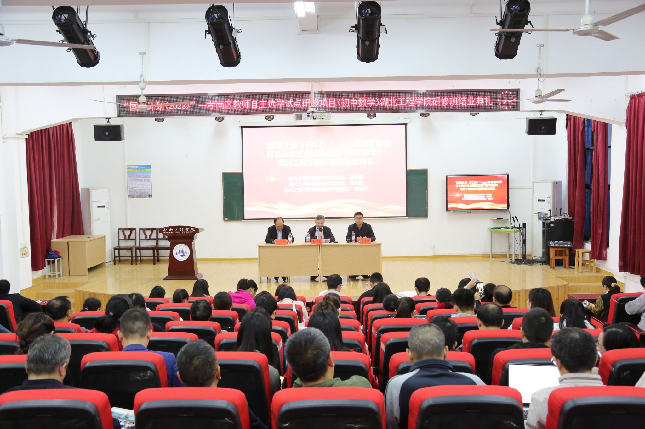 2023年11月5日,“国培计划(2023)”——孝南区教师自主选学试点研修项目(初中数学)威廉williamhill培训班结业典礼在教育与心理学院报告厅隆重举行。WilliamHill威廉希尔院长肖应雄、继续教育学院院长涂国平以及来自孝感市孝南区各中学的99名国培学员参加典礼。项目负责人胡付高教授主持典礼。