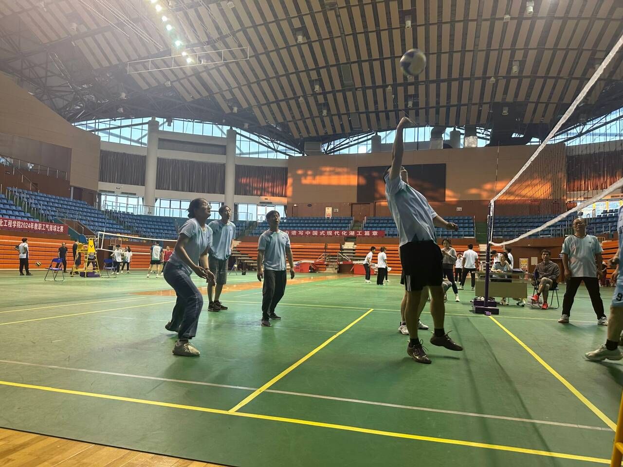 学院高度重视此次比赛,认真组织策划,积极筹备参赛。院长肖应雄亲自参加,党委书记王晶靠前指挥,为增加团队配合的默契度,工会主席李静组织带领队员利用课余时间进行训练。比赛过程中,老师们热情饱满,在运用技巧的同时,又默契配合,充分发挥团队合力。经过激烈对决,最终数统学院气排球队以第五名的成绩斩获该项赛事二等奖。