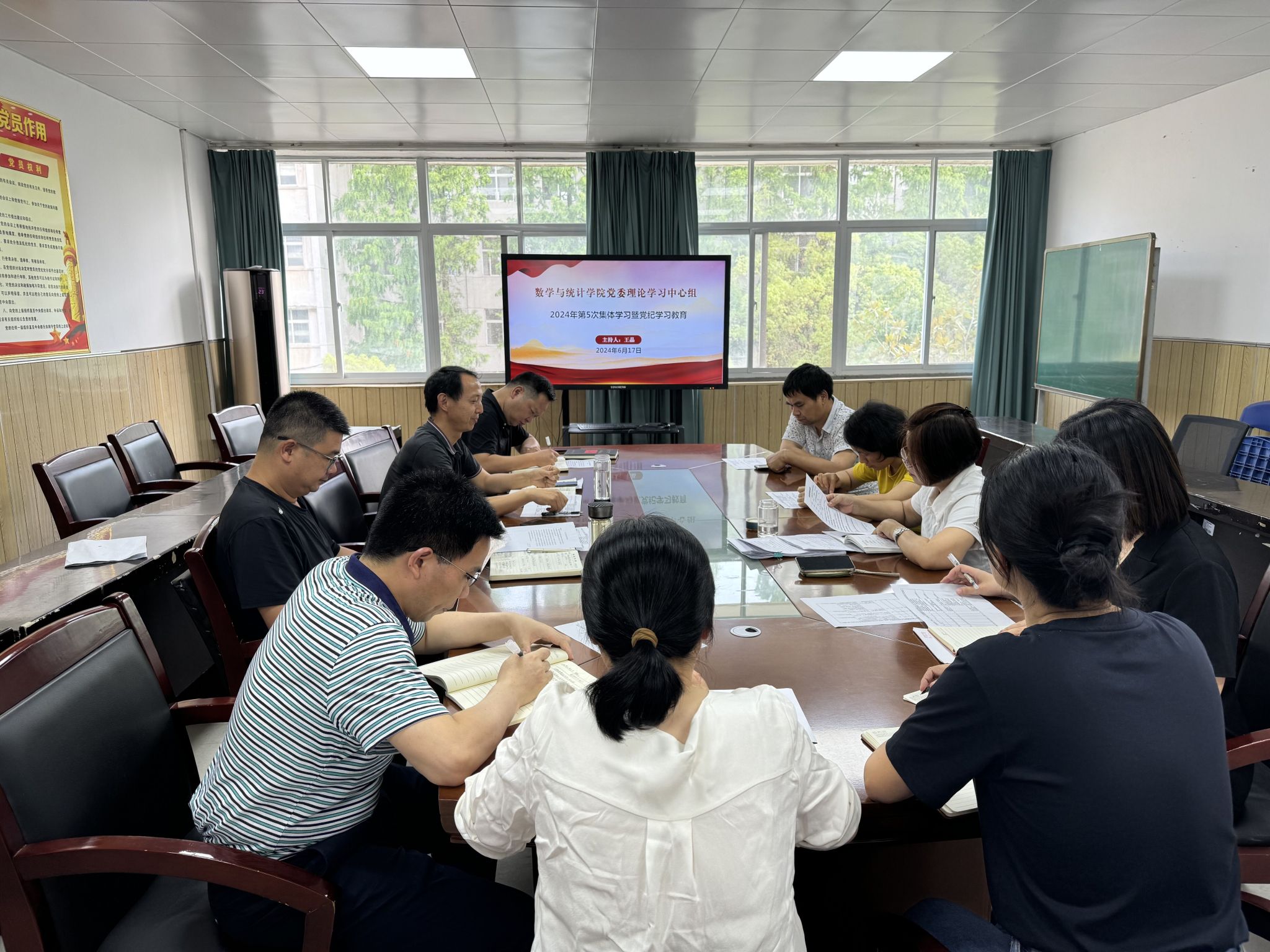 6月17日下午,我院党委理论学习中心组在学院二楼会议室举行2024年第5次集体学习暨党纪学习教育活动。全体党委委员、各党支部书记参加会议,院党委书记王晶主持会议。