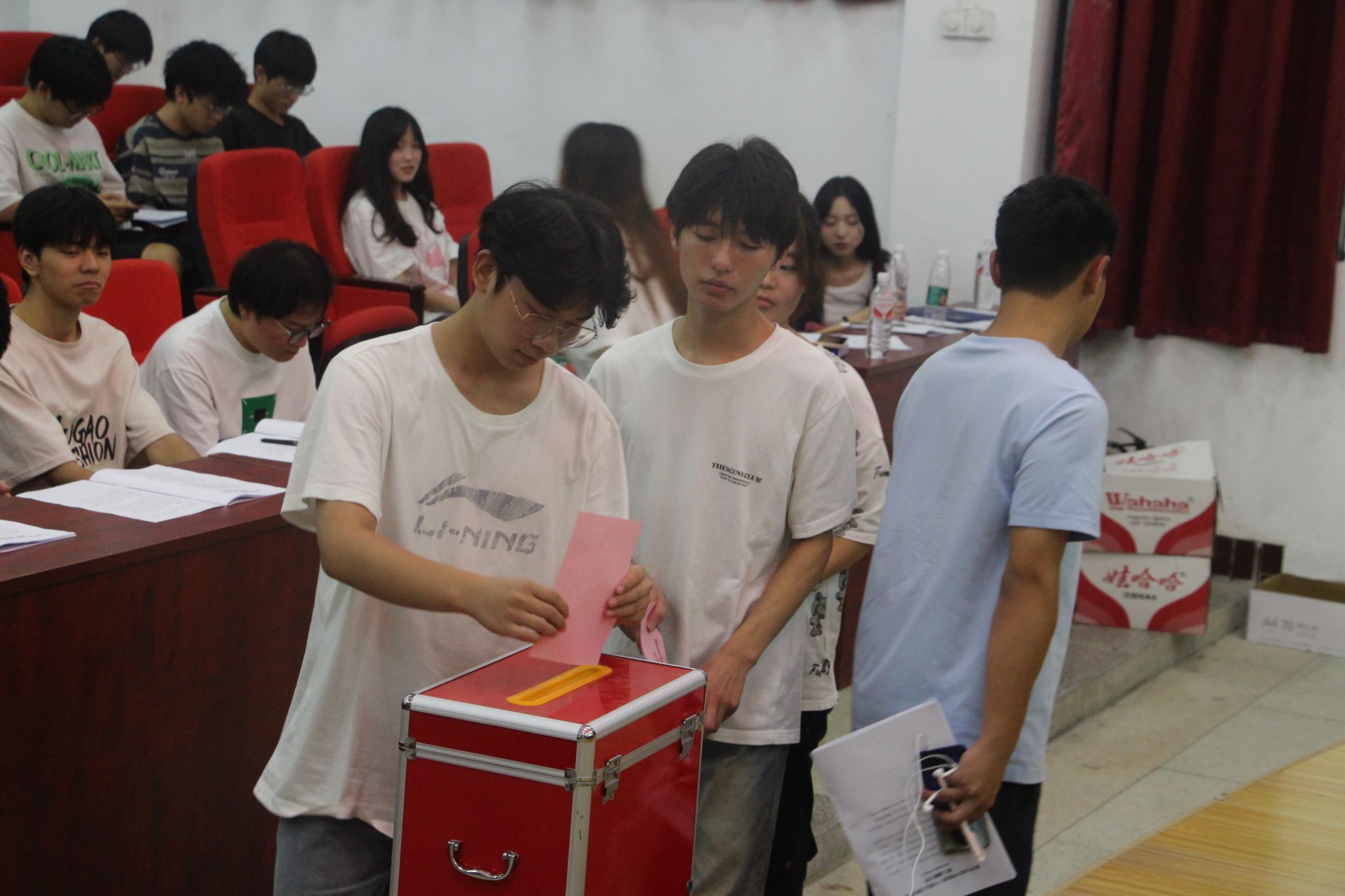 为加强学生组织建设,提升学院学生“自我教育、自我管理、自我服务”能力,引导学生正确行使民主权利。2024年6月24日晚上7:00,数统学院第五届学生代表大会在教院报告厅顺利召开。出席本次会议的有院党委副书记尹洁老师、团委书记郑放老师、辅导员马灵通老师、辅导员吴亚美老师、校学生会代表周何言同学,以及学院各班学生代表和第十五届分团委、学生会全体学生干部,会议由郑放老师主持。